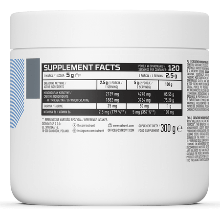 OstroVit Creatine Monohydrate is the highest-quality creatine monohydrate, which repeatedly enhances the anabolic, ergogenic and anti-catabolic effects of creatine.