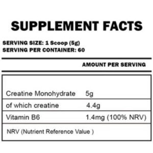 Ingredients: Creatine monohydrate, vitamin B6 (pyridoxine hydrochloride).
