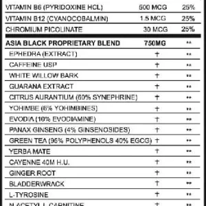 But Asia Black 25 goes beyond the traditional ECA stack. It attacks body fat from multiple angles with added ingredients like: