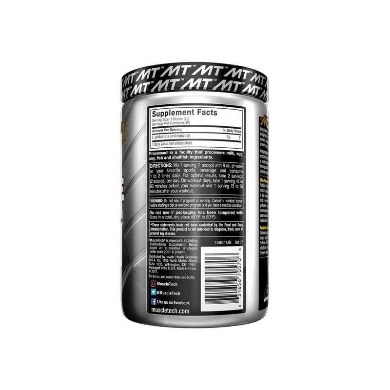 Glutamine is produced in the muscles and is distributed by the blood to the organs that need it. Glutamine might help gut function, the immune system, and other essential processes in the body, especially in times of stress. It is also important for providing “fuel” (nitrogen and carbon) to many different cells in the body. Platinum 100% Glutamine, is designed for everyone, from active men and women and fitness enthusiasts to high-performance athletes, powerlifters, crossfitters, bodybuilders, endurance athletes, and anyone looking to boost their glutamine intake to help replenish plasma glutamine, and support cell volumization, protein synthesis, and glycogen replenishment after training