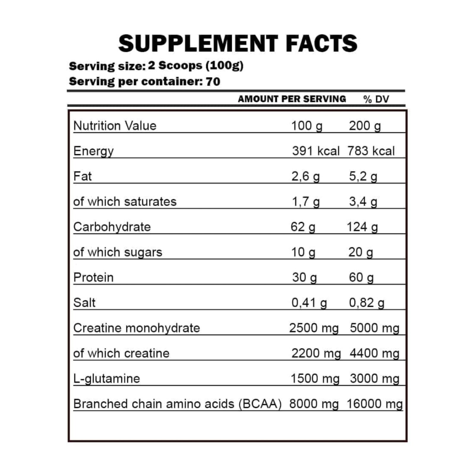 • Smart Carb Complex: Low-GI oats, maltodextrin, and waxy maize deliver 250g of clean energy without fat storage.