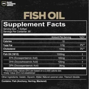 WE ALL KNOW THE BEST WAY TO GET OMEGA-3 FATTY ACIDS IN OUR DIET IS THROUGH EATING FISH, BUT WE ALSO KNOW MOST PEOPLE DON’T CARE TO COOK OR EAT FISH. ENTER BASIC TRAINING SERIES FISH OIL. RICH IN OMEGA 3s, CONSISTING OF EPA, DHA AND DPA, BASIC TRAINING SERIES FISH OIL IS A GREAT WAY TO SUPPLEMENT YOUR DIET WITHOUT THE MESS OR SMELL OF COOKING FISH.